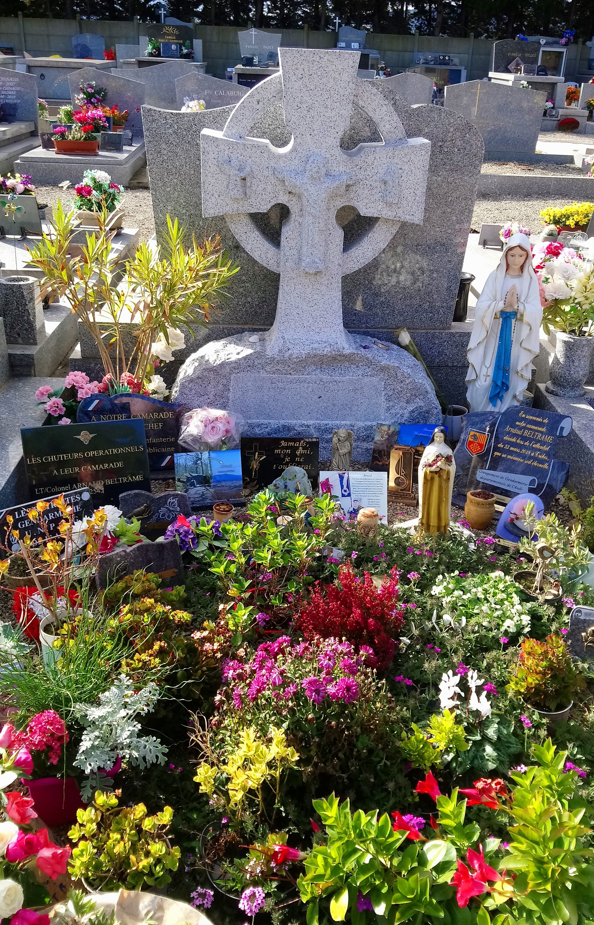 la tombe du lientenant colonel Arnaud Beltrame est à Ferrals - les - Corbières et tout le monde peut s'y rendre (information venant de son frère)