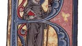 Portait de Bernard de Clairvaux dans une lettrine ornant un manuscrit de La Légende dorée, vers 1267-1276.
