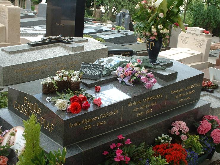 Édith Piaf a été embaumée avant d'être enterrée. Elle se trouve dans un caveau où reposent également son père, Louis-Alphonse Gassion, mort en 1944, son mari, Théo Sarapo, tué dans un accident de voiture en 1970, et sa fille Marcelle, morte en 1935, à l'âge de 2 ans.