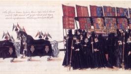 Procession funèbre d'Élisabeth Ire avec les bannières de ses ancêtres.