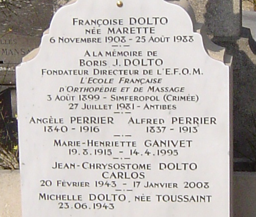Aidez-nous à localiser la tombe de Françoise Dolto en nous envoyant l'adresse du lieu où se trouve sa sépulture (cimétière...). Facultatif : transmettez-nous également les coordonnées GPS de l'emplacement exact de la sépulture de Françoise Dolto.