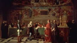 Galilée face au tribunal de l'Inquisition Catholique Romain peint au XIXe siècle par Joseph-Nicolas Robert-Fleury.