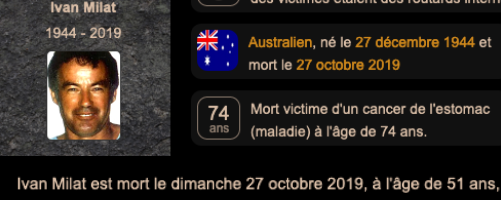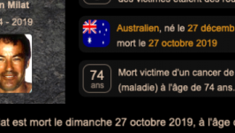 Australien, né le 27 décembre 1944 et mort le 27 octobre 2019