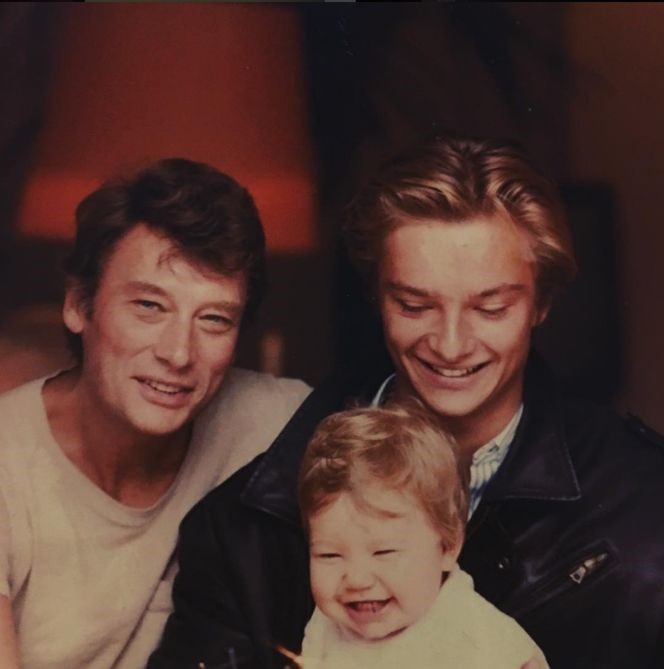 une photo de famille d'y a plus de 30 ans : papa Johnny avec David et Laura