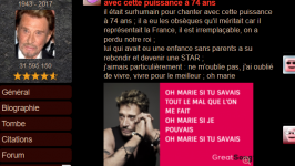 Clo63 et il ferait n'importe quoi pour favoriser son idole Claude François, je suppose que lui n'a pas ce genre de problème sur la page vote ! :-) comme par hasard....