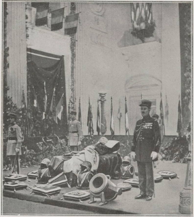 Il défila aux côtés de Foch et de Pétain, lors du défilé de la Victoire, le 14 juillet 1919 ; et il aurait droit, au terme de ses jours, à de superbes funérailles nationales. Le maréchal Joffre fut élu à l'Académie française le 14 février 1918, à l'unanimité des 23 votants, au fauteuil de Jules Claretie. Son élection marquait la reprise des scrutins, après l'interruption des années de guerre qui laissait neuf fauteuils vacants. L'unanimité qu'il suscita inaugurait véritablement ce phénomène de « plébiscite » qui avait déjà marqué en 1912 l'élection du futur maréchal Lyautey, et que l'on devait appeler les « élections de maréchal ». Reçu le 19 décembre 1918 par Jean Richepin, il assista à la cérémonie, dans son uniforme de général d'armée, et non en habit vert que seuls les ecclésiastiques et les généraux en chefs sont dispensés de porter en la circonstance.