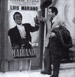 Luis-Mariano Eusebio Gonzalez né à Irun le 13 Août 1914. Luis-Mariano était le fils d'un mécanicien. Sa famille se réfugie en France au moment de la guerre civile espagnole. Le jeune Luis attire par le dessin entre à l'école des beaux-arts de bordeaux. De plus il chante. Reçu au concours d'entrée du conservatoire de bordeaux, il est remarqué par Jeannine Micheau, qui s'aperçoit qu'on lui fait travailler des rôles trop lourds pour lui. La cantatrice lui fait connaître Miguel Fontecha, dont les leçons lui seront bénéfiques. Luis-Mariano affronte la scène du Palais de Chaillot en décembre 1943, dans le rôle d'Ernesto de Don Pascual (au coté de Vina Bovy et Gilbert Maurin). En attendant le résultat d'une audition à l'opéra comique il chante dans des spectacles de variété à la radio. Il commence à être connu.