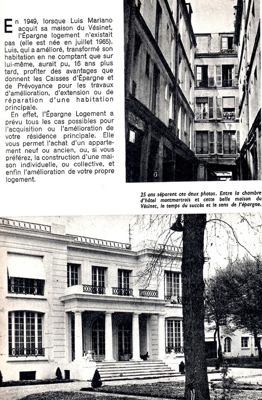Anonyme-59649 D'après les photos, 25 ans séparent les deux photos - Entre la chambre d'hotel montmarptrais et cette Belle Maison du Vésinet, le temps du succès et de l'épargne de l'Artiste Luis Mariano !!