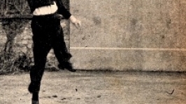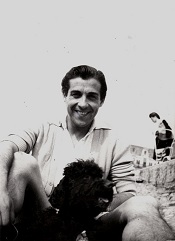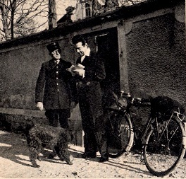 Anonyme-59649 L.Mariano attendait son courrier qui devient important, il est avec son chien noir ! Derrière le mur ancien, se trouve son parc et sa maison -