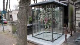 Je suis allée dernièrement à Paris et j'ai visité le cimetière de Montmartre. J'y ai vu sa tombe qui est aussi celle de sa fille, elle est magnifique ! dans un grand cube de verre se dressent 2 branches : une de fleurs blanches et la seconde de fleurs roses symbolisant le papa et sa fille. Au sol une dalle avec les inscriptions du nom et des années de naissance et de décés des 2 disparus ; Vraiment cette tombe m'a émue (je suis une maman aussi) par sa symbolique et sa simplicité . Reposez en paix dans ce lieu de calme et de sérénité